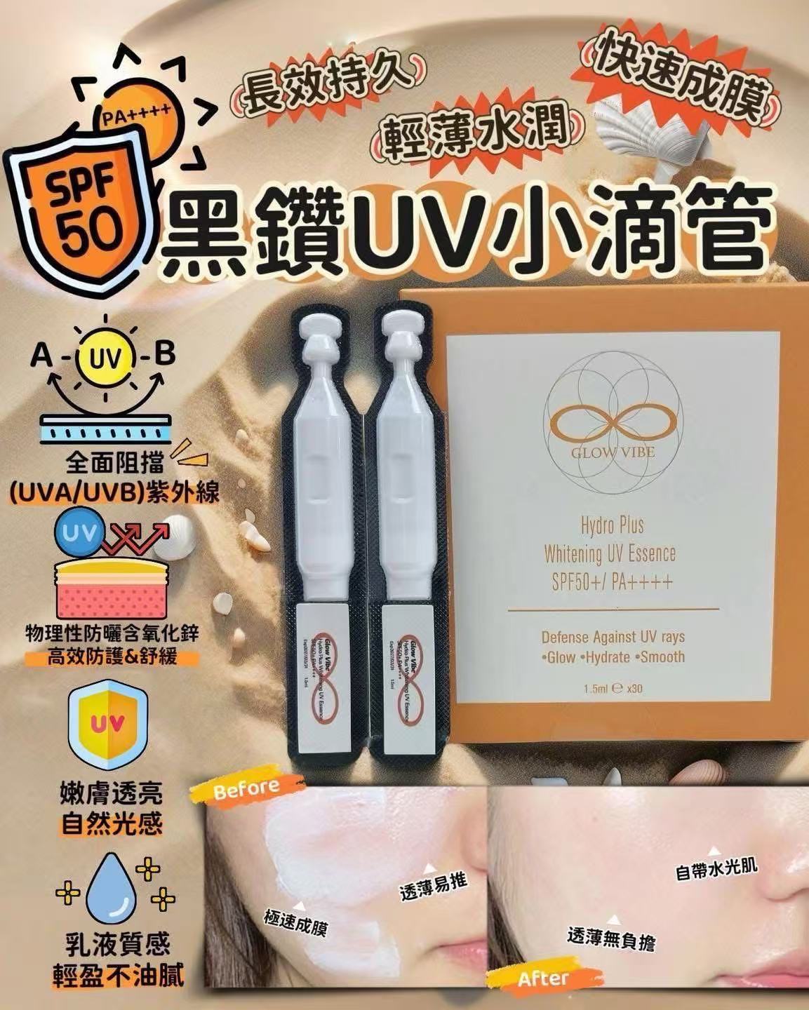 ✨ 【Glow Vibe #黑金UV小滴管|防曬界的「?️隱形水光盾」】✨